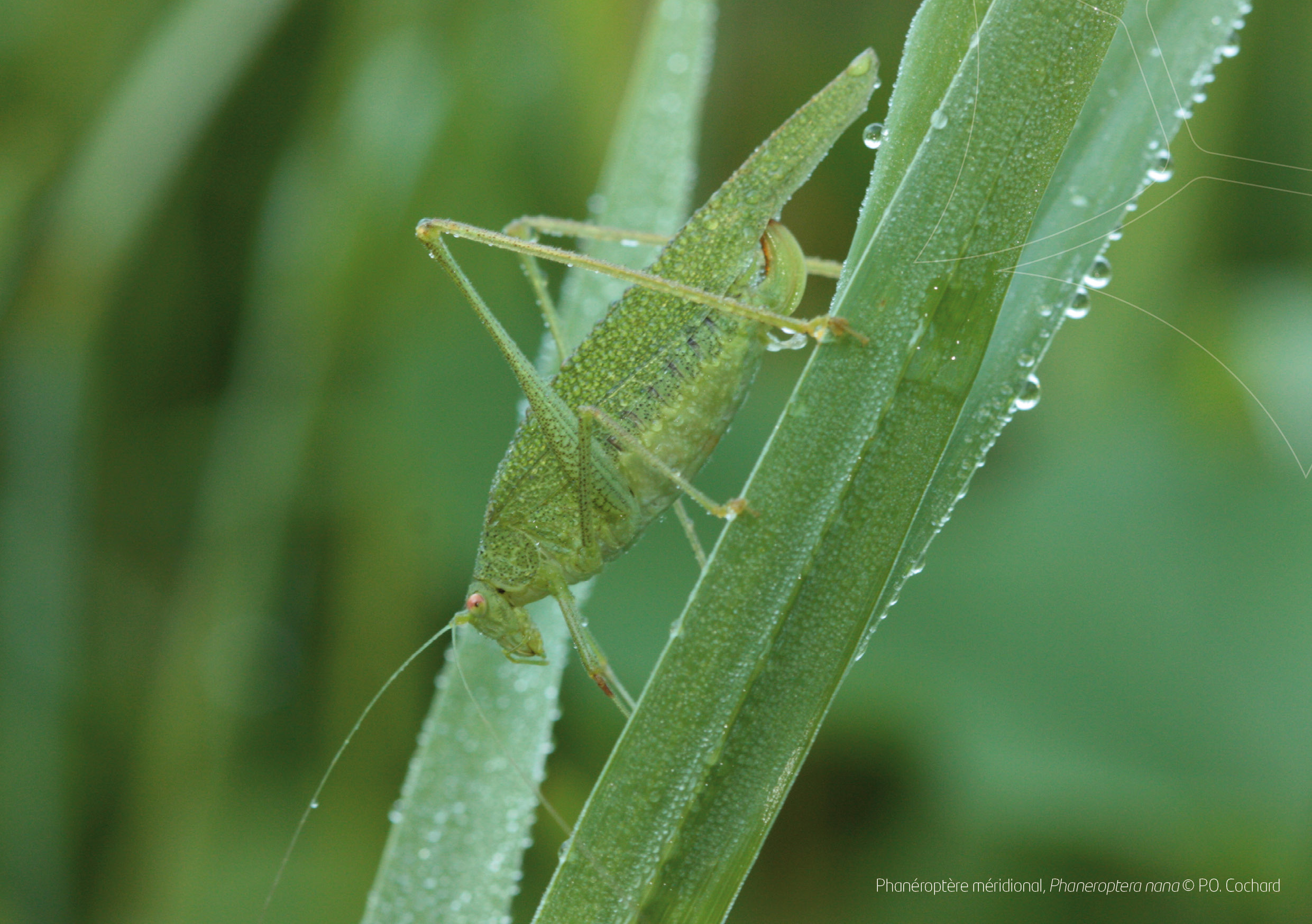 Dans ces zones humides, lorsque des hautes herbes denses se développent (baldingères ou carex par exemple), deux sauterelles peuvent être découvertes : le Conocéphale gracieux Ruspolia nitidula et le Conocéphale bigarré Conocephalus fuscus. Comme leur nom l’indique, ces sauterelles ont une tête étirée vers l’avant, conique. Une fois la nuit tombée en août et septembre, le Conocéphale gracieux émet une stridulation puissante, quasi désagréable voire insupportable lorsqu’on est proche. Il est le cauchemar des chiroptérologues qui se voient brouiller l’écoute de leur détecteur ultra-sons.